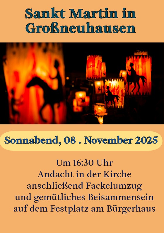 Um 16:30 Uhr Andacht in der Kirche anschließend Fackelumzug und gemütliches Beisammensein auf dem Festplatz am Bürgerhaus